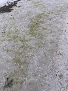 Kathy S. reports: “A fair amt of junegrass. While looks a little clearer by shore it gets thick about 3 feet deep. What washed up at high tide tells the story. ”