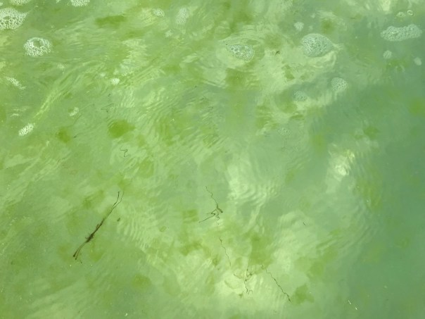 “This was taken in front of Summer Place, we walked down to the pier and it was about the same. Some of the june grass was washing up on the beach but most of it stayed in the water . I’ll rate this an 8 on the funky factor, hopefully it will move on quickly.